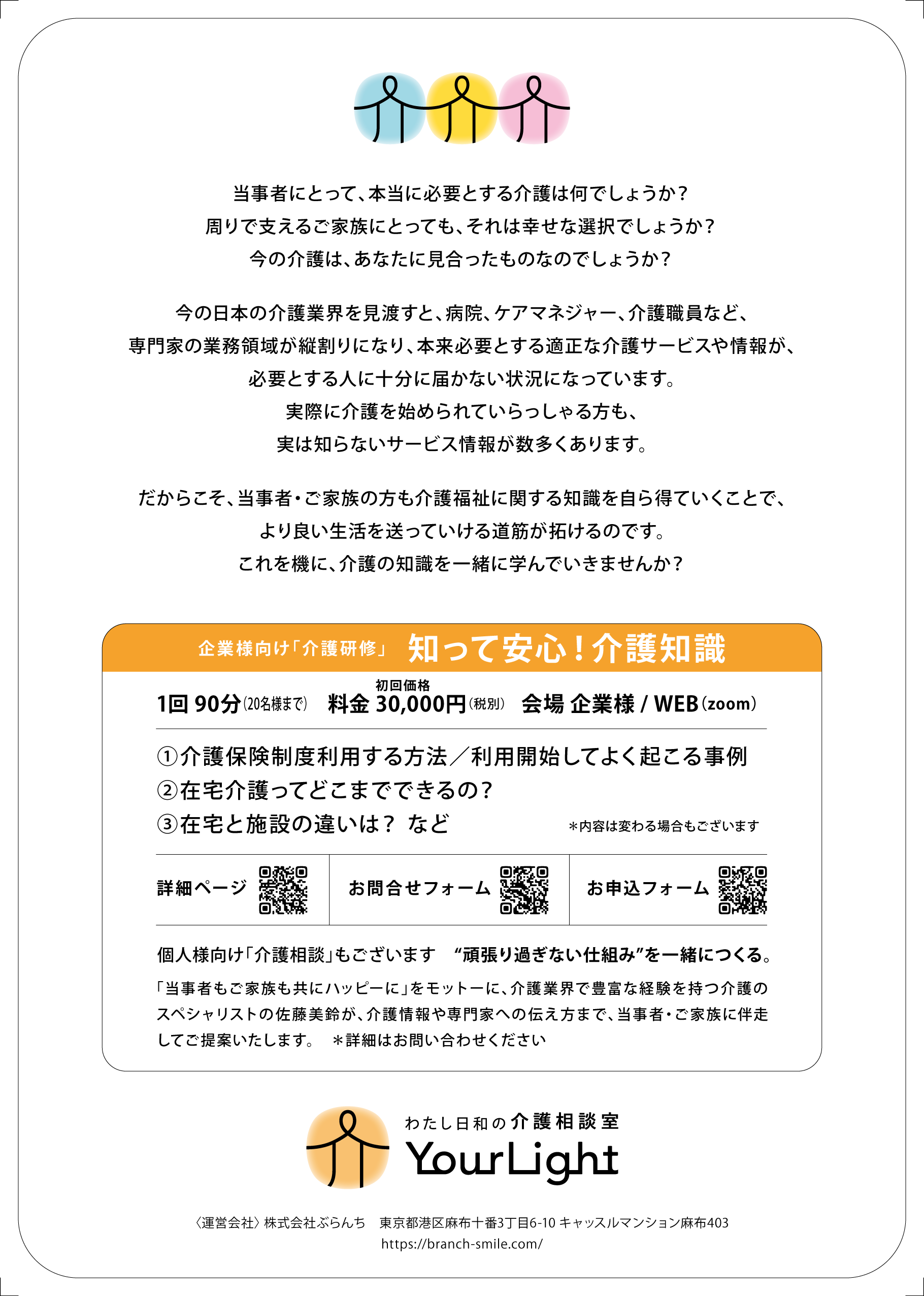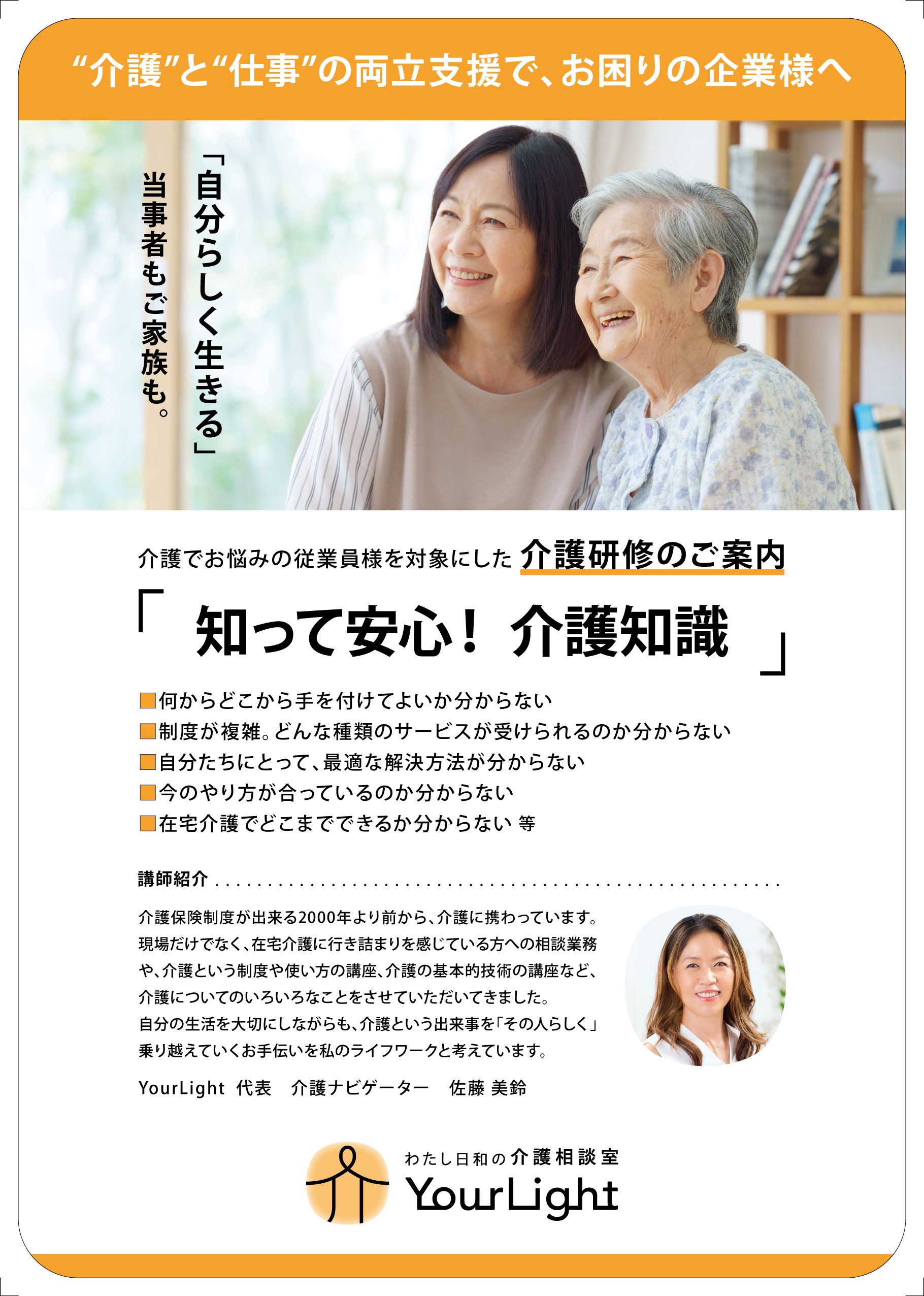 自分の生活を大切にしながらも、介護という出来事を「その人らしく」乗り越えていくお手伝いを私のライフワークと考えています。
